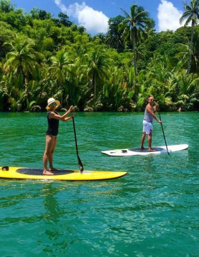 Stand Up Paddle Board tours are all guided tours that begins with an introductory lesson. Our assigned tour guides are well trained and they are familiar with the river because they are from the local community. We have a policy to limit 1 tour guide to every 5 persons but we also add more tour guides depending on the age or the experience of the paddlers. We provide complete equipment (board, paddle, leash, (PFD) Personal Floating Device or lifevest)